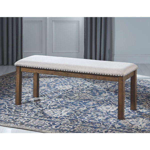 A cantilevered upholstered bench footboard adds utility and comfort to this farmhouse style bed.