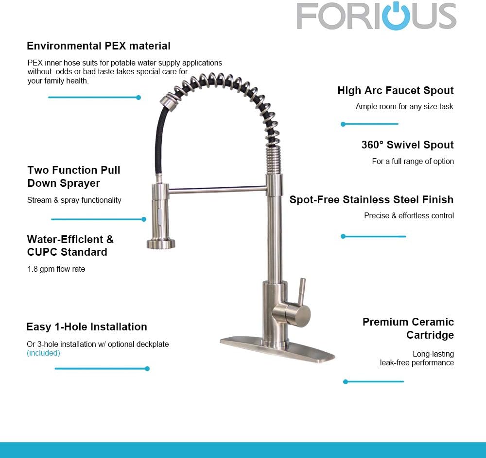 Buy Rainovo Kitchen Faucet With 4 Mode Pull Down Sprayer Matte Black 3 Hole Kitchen Sink Faucet Stainless Steel With Deck Plate Single Handle Faucets High Arc Commercial Modern With Pull Out from m.media-amazon.com 3 hole 8, center hole. She's out of the country right now so i was wondering if anyone knows what brand(s) have this feature? This tutorial shows you how to install a pull down spray kitchen faucet. They allow you to quickly scrape dirt dishes and save you precious seconds per dinnerware and cookware. Pull down kitchen faucet sprayer are those with a detachable spray head attached to a hose that passes through the body of the faucet. When compared to pull down faucets, the pull out faucets will offer you with better water pressure making them a perfect choice for rinsing the dishes. Fapully commercial single handle pull down sprayer brushed nickel kitchen faucet with led light has an all metallic body which makes the faucet durable and stylish. ··· kitchen faucets pull down sprayer pull down kitchen faucet cupc zinc alloy handle sink kitchen faucets with pull down sprayer.